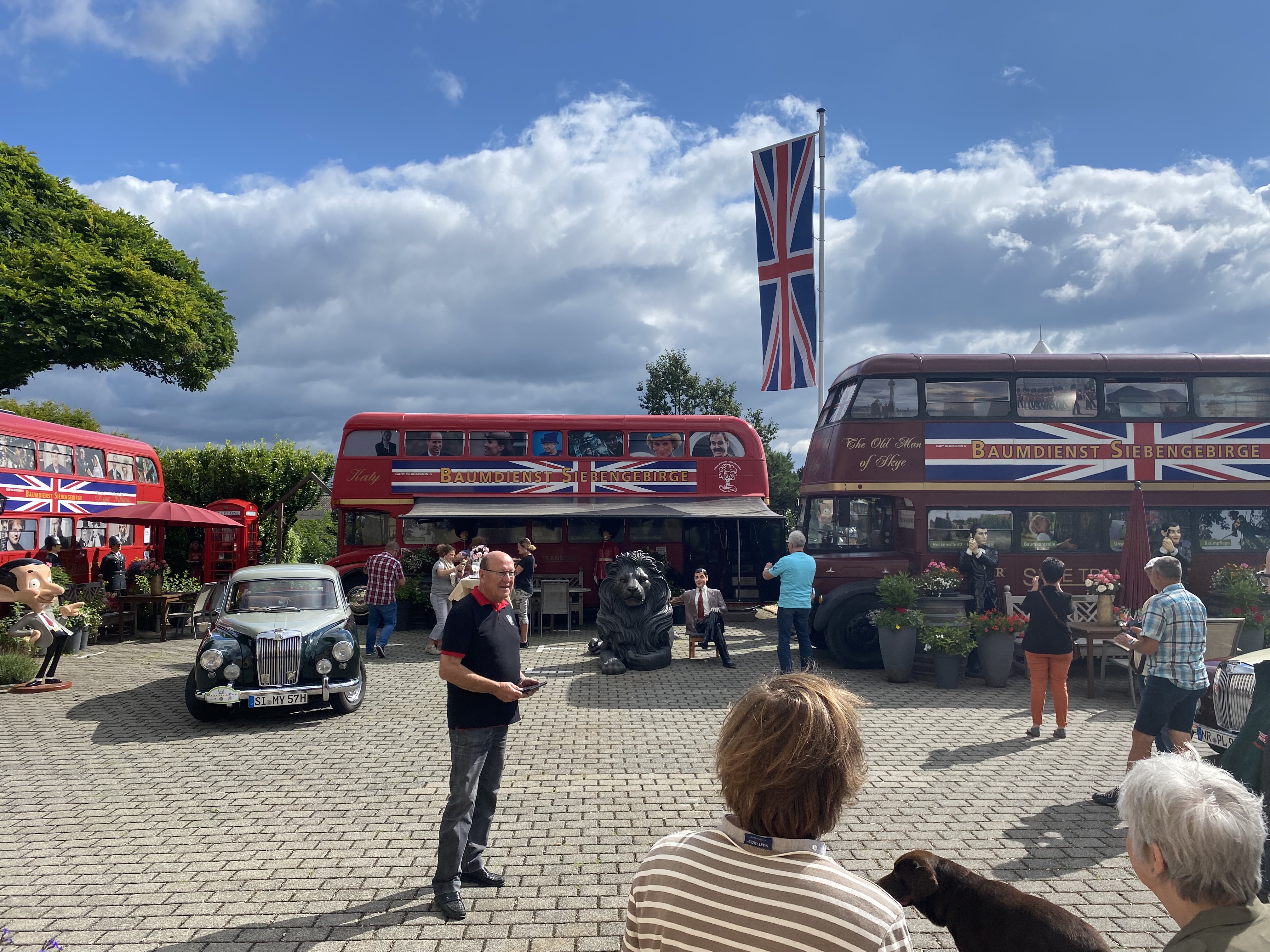 Ein Highlight war sicherlich der Besuch in „Little Britain“ nahe Linz. Eine Kulisse, wie für uns gemacht. Dort wurden wir allerherzlichst aufgenommen und konnten unseren Sektempfang zur 25.Ausgabe mit Queen und Mr. Bean feiern. Herzlichen Dank an „The Little British Inn“! (Kennt ihr nicht? – Aber die DMAX-Sendung von Steel Buddies, wo ein Engländer einen Panzer in seinen Garten stellt….)