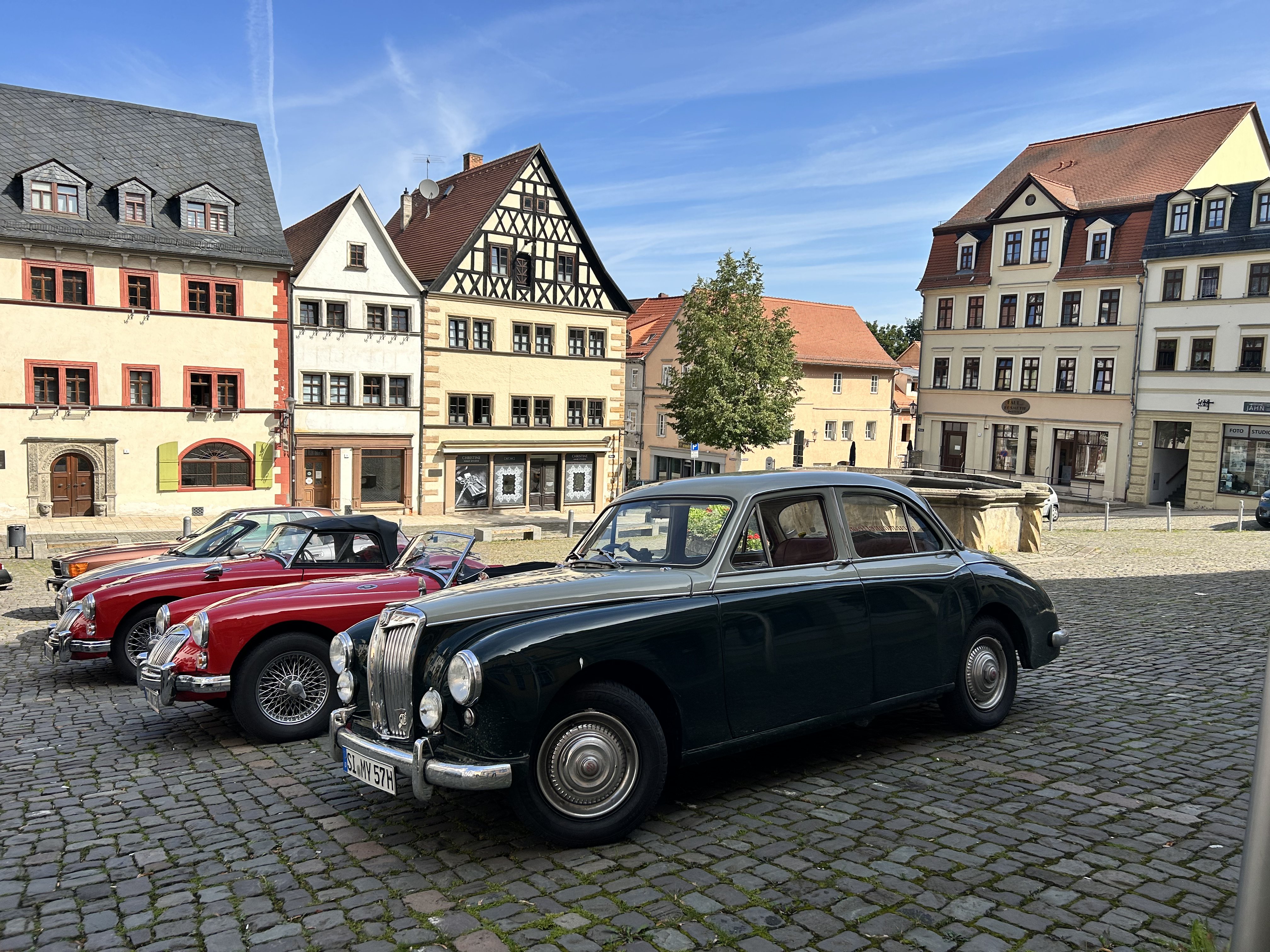 Bei bestem Wetter führte uns die Strecke durch reizvolle Landschaften, malerische Ortschaften und entlang der Saale – stets begleitet vom charakteristischen Klang unserer liebevoll gepflegten Oldtimer. Neben dem reinen Fahrvergnügen stand auch Kultur und Geschichte im Mittelpunkt unserer Touren.