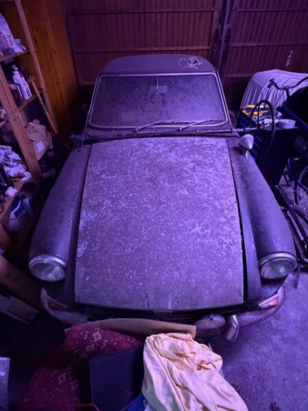 Zum Verkauf stehen eine neu lackierte Rohkarosserie, lackiert in dunkel grün auf überholten Achsen (rollbar); sowie ein MBG GT (Erstzulassung 1.7.67) als Teileträger; das Fahrzeug war seit 1981 in seinem Besitz.