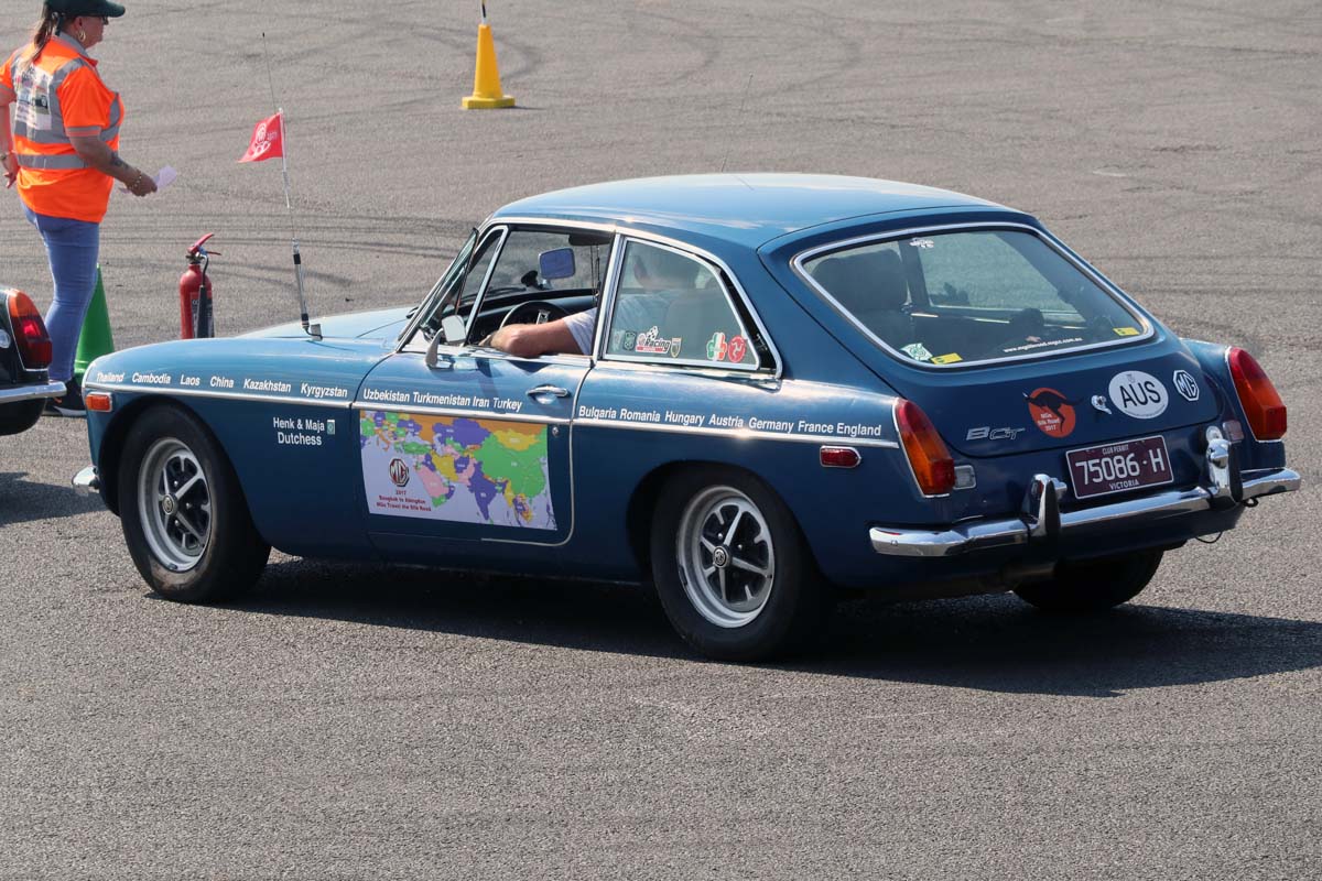 Wir trafen viele Freunde aus aller Welt, wie z.B. Neuseeland, Australien, Südafrika, USA und natürlich auch aus ganz Europa. Eine ‚Arena‘ war aufgebaut und hier wurden die Jubiläen gefeiert, um Pylonen der ‚ California Cup AutoTest‘ gefahren und Russ Swift zeigte seine Stunt Show. Wayne Scott, ein erfahrener Motorjournalist, kommentierte sehr launig alle Veranstaltungen.