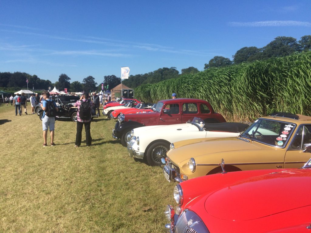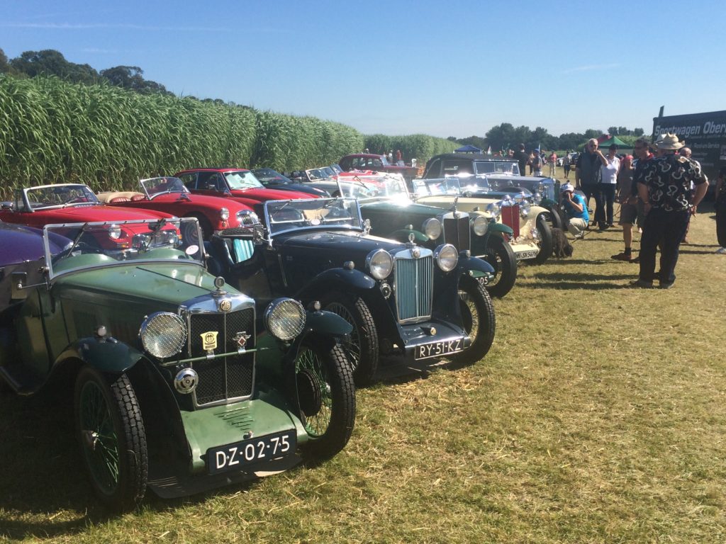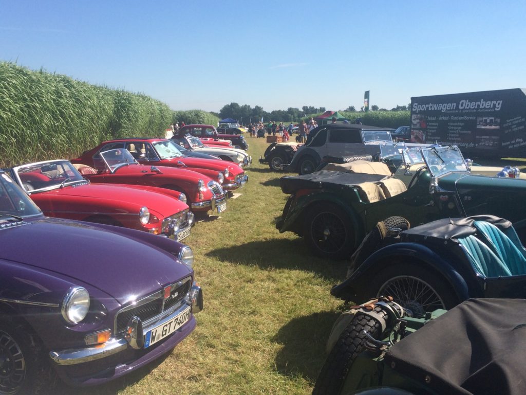 Wieder mal herrliches Sommerwetter, was in diesem Jahr ja nicht selbstverständlich ist, bei den Classic Days Schloss Dyck. Zahlreiche Zuschauer strömten schon frühmorgens durch die Felder, um PS-starke Boliden auf der Rennstrecke zu sehen. Darunter zahlreiche MG-Freunde aus nah und fern, die ihr Auto am Clubzelt im zentralen Miscanthusfeld parkten, um sich mal schöne Autos ohne Oktogan anzusehen (ja,die gibt es auch, meistens allerdings zu anderen Preisen).