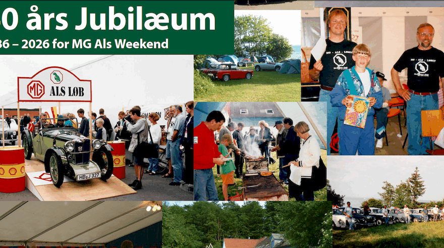 Der MG Car Club Dänemark feiert 2026 das 40-jährige Jubiläum des Als Weekends auf der Insel Alsen, gleich hinter der deutschen Grenze bei Flensburg. Die näheren Informationen zum Treffen sind voraussichtlich ab Februar 2026 auf der Internetseite des dänischen Clubs zu finden. Hier schon einmal der Infoflyer vorab: